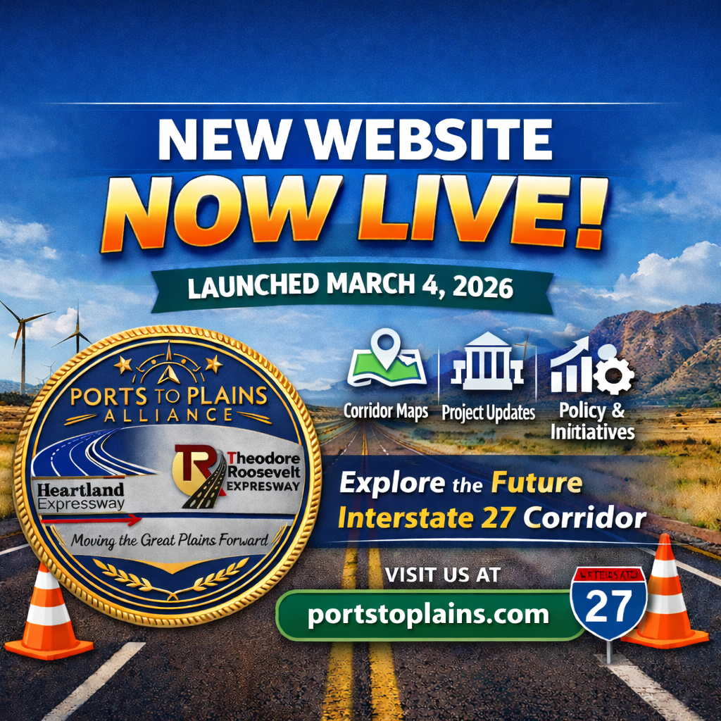 We’re Live! The New Ports-to-Plains Alliance Website Has Launched On March 4, 2026, the Ports-to-Plains Alliance launched its newly redesigned website, providing a more modern platform to showcase the progress of the Ports-to-Plains Corridor and Future Interstate 27 system.