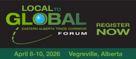 The Local to Global Forum provides elected officials, service providers, economic development professionals, and community members the opportunity to network and discuss strategies to diversify and grow rural economies in Eastern Alberta. Invitations have been extended to Minister Dreeshen, Transportation/Economic Corridors, & Irrigation and Minister Neudorf, Affordability & Utilities. Other speakers include the Honorable Shane Getson Parliamentary Secretary Economic Corridors and Nathan Cooper, Alberta’s Senior Representative to the U.S. Other topics include the Electricity Landscape with presentations from AESO and AltaLink. Lauren Garduno, President/CEO of the Ports-to-Plains Alliance will present on Thursday, April 9, 2026.
